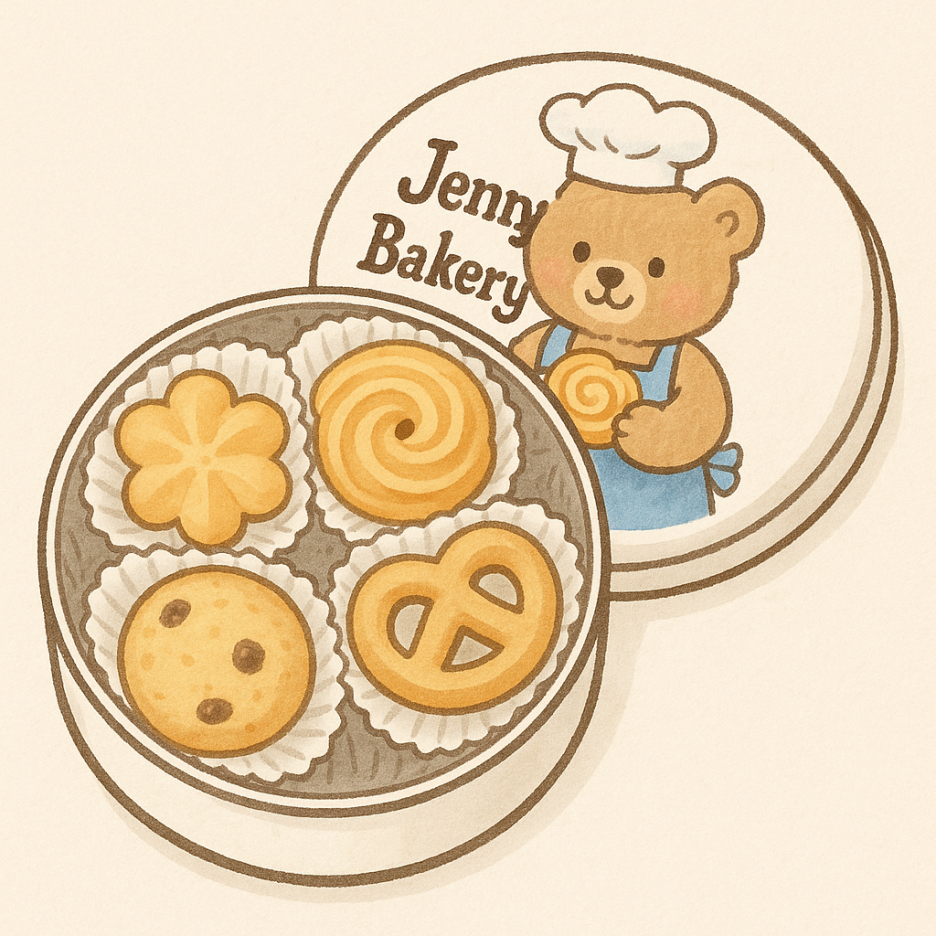 제니 베이커리 쿠키는 기본적으로 고품질 버터, 설탕, 밀가루, 그리고 약간의 전분과 우유가 들어간 전통적인 레시피로 만들어집니다.